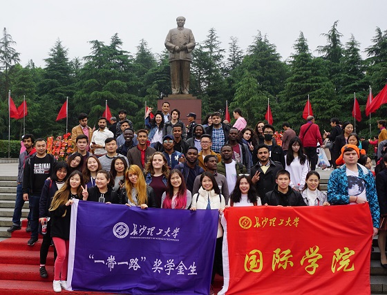 4月24日下午,为加强对国际学生“知华友华”教育,国际学院国际学生工作办公室组织学院2017级中国政府奖学金生、孔子学院奖学金生、湖南省“一带一路”奖学金生等四十余名国际学生赴韶山开展红色文化考察活动。国际学生工作办公室孙夕珺、梁佳和部分志愿者参加了此次红色文化考察之旅。