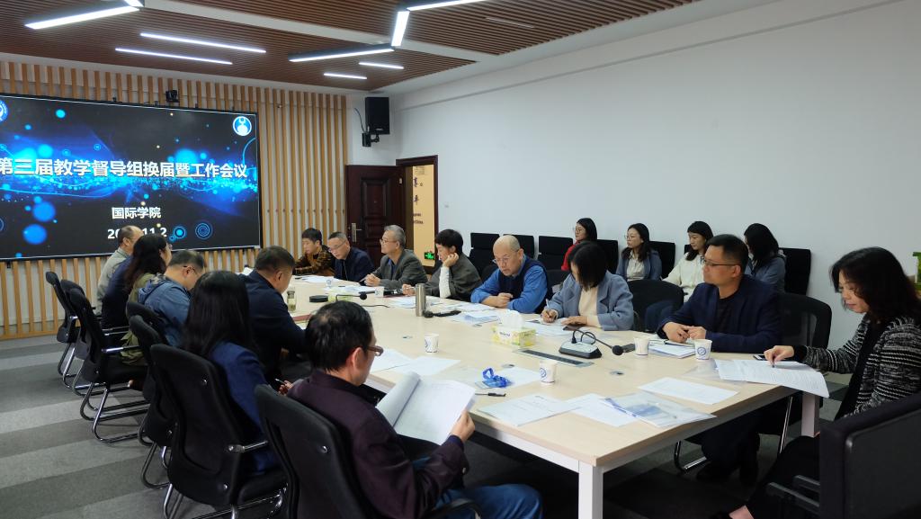 11月2日下午,国际学院在云塘校区新能源大楼1栋416会议室隆重召开学院教学督导组换届暨工作会议。校教学质量监测与评估中心副主任贺晖、国际学院教学督导专家、学院全体领导及教务办、留教部老师参加会议,会议由副院长秦卫星主持。