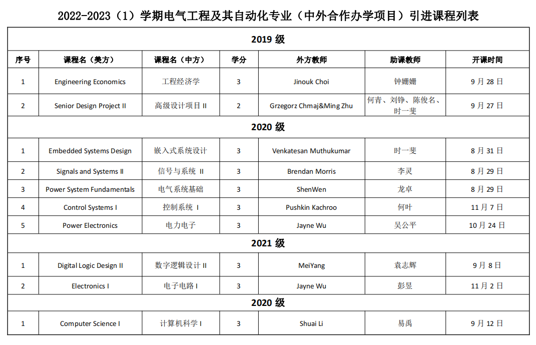 本学期本项目引进课程共10门,授课面向四个年级,来自美国内华达大学拉斯维加斯分校的教授承担教学工作。为保障教学质量,学院还邀请了来自william电气学院、水利学院、计通学院的袁志辉、李灵、钟姗姗、易禹等12位优秀教师担任课堂助教,承担现场答疑和系统归纳和梳理知识点的工作,帮助学生更好地掌握专业知识。学院将以迎接教育部专项评估为契机,及时总结引进课程实施经验,积极研究新情况,着力解决新问题,促进中外合作办学项目提质增效,进一步提升中外合作办学水平,更好地服务学校国际化人才培养。