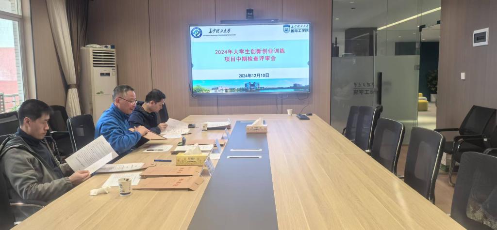 12月10日, 国际工学院大学生创新创业训练项目中期检查评审会在云塘校区文科楼E区502会议室举行。项目验收小组由来自电气、汽机和交通学院的周腊吾教授、黄毅教授、 徐鹏老师等专家组成,会议由专家组组长周腊吾教授主持。