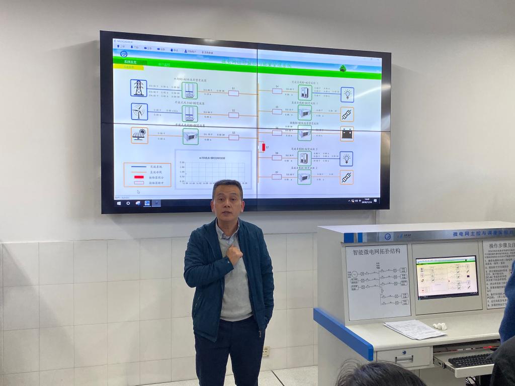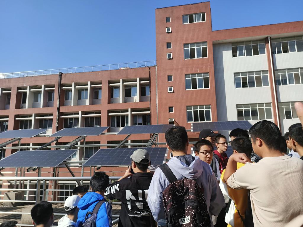 在实验室内,马均老师带领学生们参观了太阳能板等设备,王伟平老师为学生介绍了直流电机的运行流程等,唐欣老师也向大家演示了微电网运行监控与能量管理系统的运行。在老师的详细介绍下,学生们在实验室里了解了电机等设备的零件名称及运行流程。在介绍过程中学生们紧紧跟随着讲解的老师,在老师的讲解中不断发掘着自己的兴趣。
