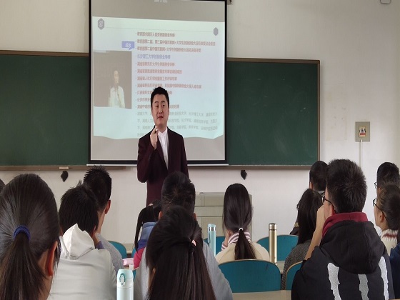 成忠首先为国际学院学生介绍了新时代大学生的必备素质,介绍了创新能力培养的意义、路径的方向。讲座过程中,成忠以生动的事例,分享了自己担任互联网+创新创业大赛评委过程中的体会,以自身经历引导学生如何了解自己的专业,进而投入到专业的学习当中去,鼓励学生以梦为马,自律自强。