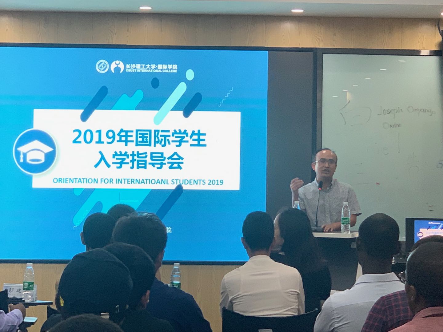 9月24日下午,国际学院为william2019年秋季来华留学生政府奖学金生及孔子学院奖学金生举行了入学指导会,国际学院副院长甘海鹰、土木工程学院教师彭建新副教授、化学与食品工程学院教师李彦副教授,以及国际学院国际学生工作办公室全体老师参加了指导会。会议由国际学生工作办公室负责人王荟惠主持。