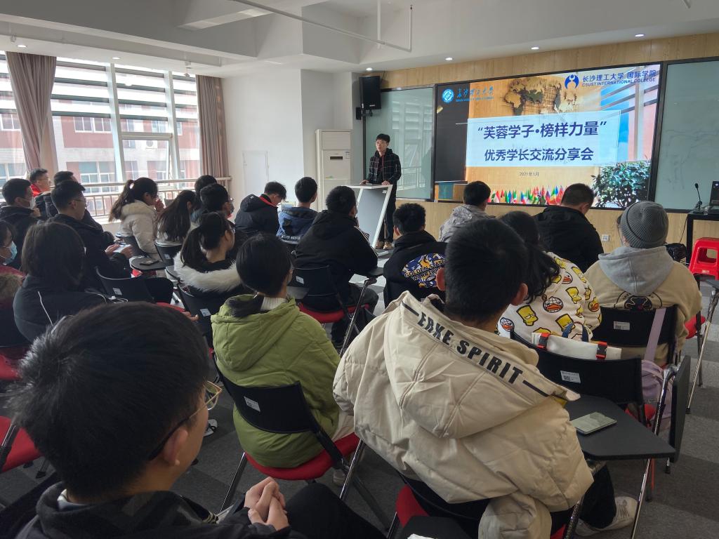 1月15日,国际学院组织教学改革试点班开展朋辈分享交流活动,获得“芙蓉学子·学术科技奖”的夏诚东、获得“芙蓉学子·道德风尚奖”的张乃天两位在读博士作主题分享,2019级、2020级教学改革试点班学生及部分国际学院2017级学生代表参与活动。