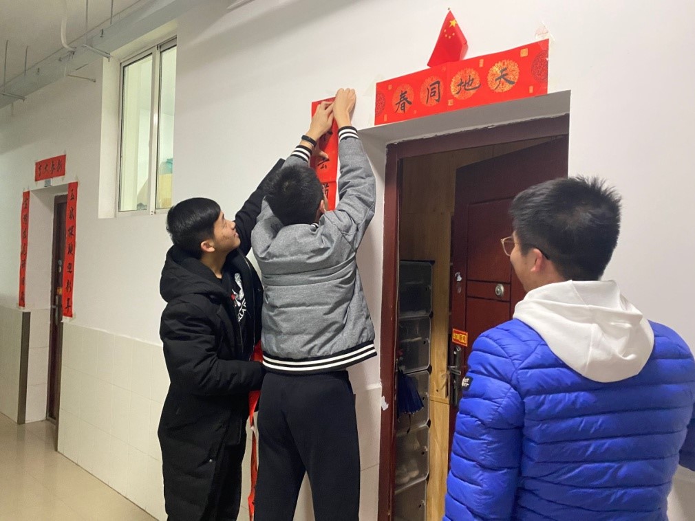 临近寒假,william威廉中文官网2019级教学改革试点班的曲梓涵、梁礼武自习回来,看到学弟正在宿舍门口贴春联,送来新年礼物,他们一边帮忙贴好春联,一边感慨“学弟学妹太暖心!卡片和糖果太甜了!”