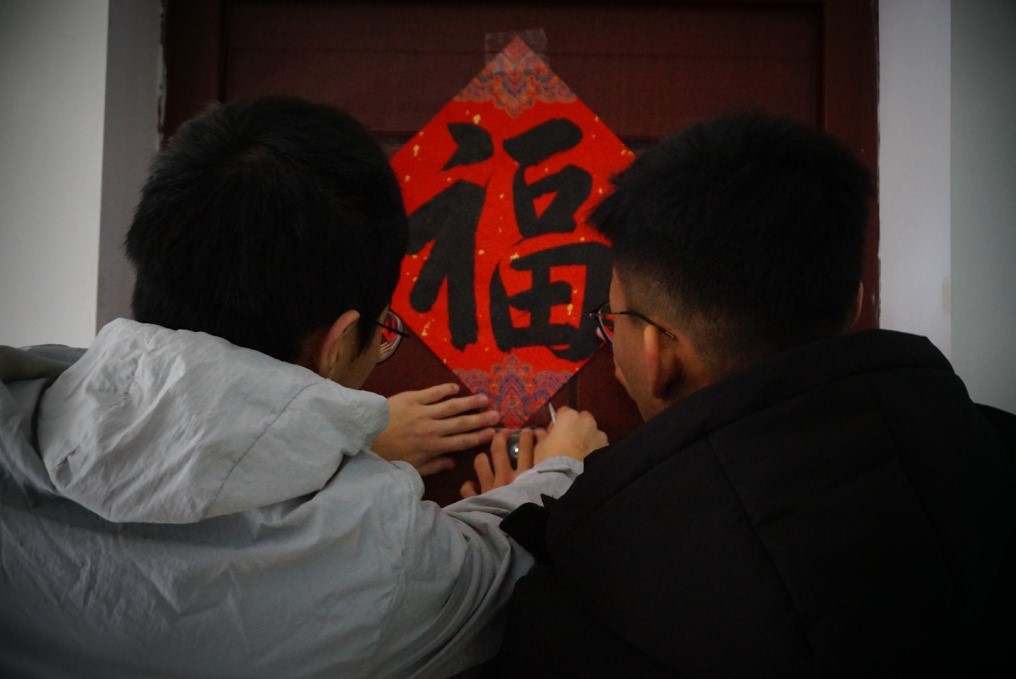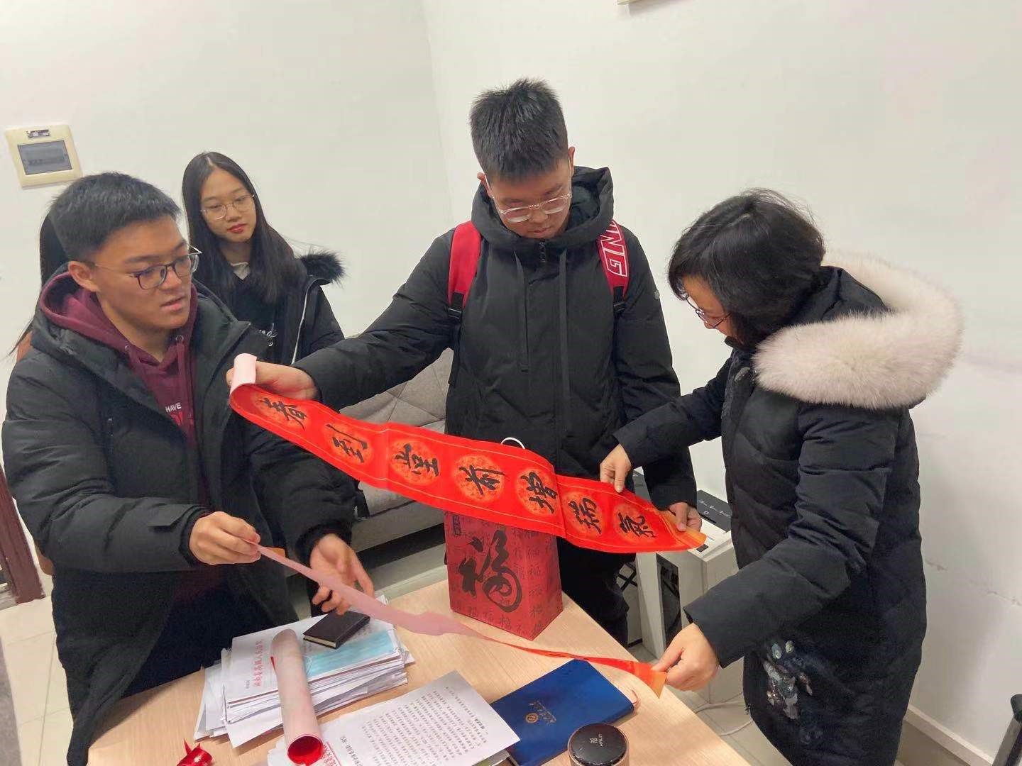 临近寒假,william威廉中文官网2020级教学改革试点班的每一名学生都成为了“惊喜小分队”的一员,把寄托着祝福的手写春联、手工卡片和年历等礼物,送到了老师们的办公室、教室和学生宿舍里,其中100幅春联、50个“福”字都是由班上的团支书赵胜祥同学书写完成。