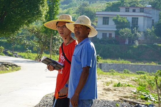 各小组到达分区地点后,首先进行了路灯测点的调研。各小组结合村民意见,完善路灯修建方案、统计好各片区所需路灯数量,并在地形图上标注好路灯大致位置。随后,实践团成员进行了各山塘、水库的初步数据测量及全景、局部照片的拍摄,为后续改进山塘水库储水量小,淤泥多等问题做准备。