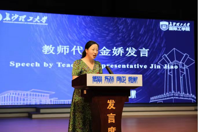 (教师代表金娇发言)