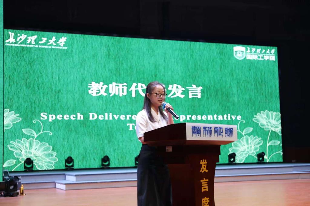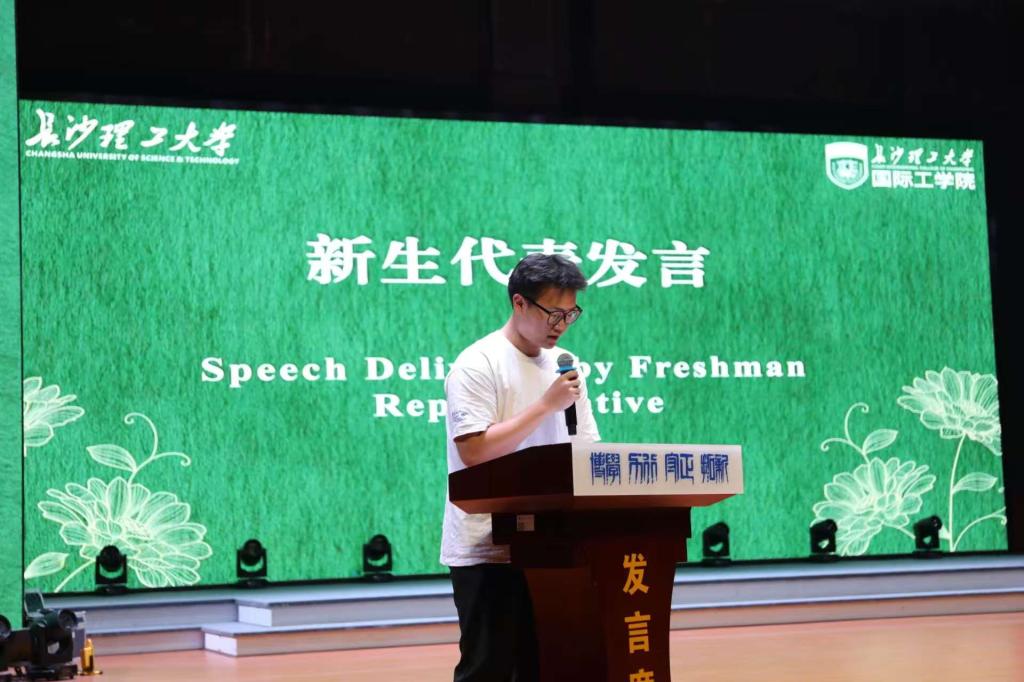 高年级学生代表易哲宇作主题报告,分享他在长理、在国际的成长经历与奋斗故事。他希望新生传承“勇于攀登、内心有光、凝聚集体、躬身实践”的精神,点亮前行之路。新生代表肖博恒回忆了军训时光,立志与全体新生一道,在未来的学习生活中书写属于自己的青春华章。“充满鲜花的地方在哪里,如果有,我一定会去!”来自越南的学生代表阮玉云青发言,她从一首中文歌引出自己学习中文的心路历程,用一口流利的中文表达对长沙的喜爱以及对未来四年大学生活的期盼。