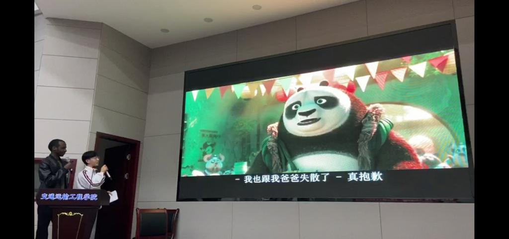在第二轮的语言表演环节,同学们分组以生动的形式展现了各自的汉语水平。来自贝宁的陆刚通过情景剧的形式为大家展现了他学习汉语的故事,告诉在座的留学生们不仅要学好汉语课堂的知识,更要在生活里体验中国文化。来自老挝的王思晨和肯尼亚的崔浩为我们带来的《功夫熊猫》电影片段配音中,他们以连贯的表达、标准的发音和恰到好处的情绪,生动有趣的演绎获得了在场师生们的一致好评。第三组选手围绕“电脑是否会取代书本”展开了辩论,其中来自肯尼亚的李元舟有条不紊地阐述观点,生动地讲述论据故事,博得了阵阵掌声。留学生们生动演绎了自己的在华生活,展示了汉语学习的成果,表达了对中华文化的热爱和对中国深厚的情谊。