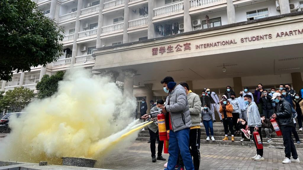 留学生通过理论与亲身实践,掌握了消防器材的正确使用方法以及科学的紧急疏散和自防自救方法,增强了消防安全风险防范和自我保护意识。