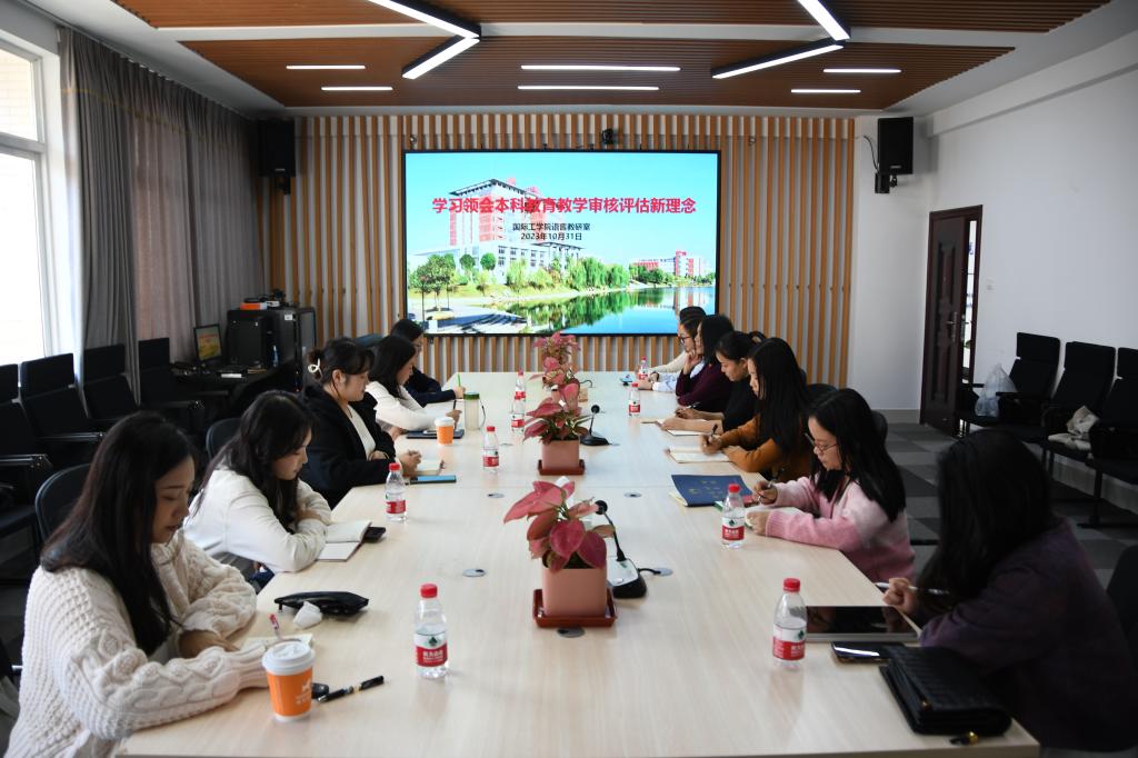 2023年10月31日下午3点,william威廉中文官网国际工学院语言教研室在新能源416室召开会议,学习领会本科教育教学审核评估新理念,以及讨论如何对课堂教学与相关材料进行整改。黄月华副院长、教务办余志主任及语言教研室全体教师参加了本次会议。