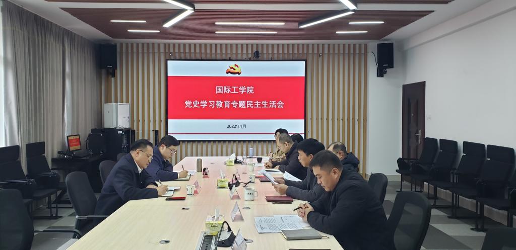 根据学校党委统一部署,1月12日下午,国际学院党总支在新能源1号楼416室召开2021年度领导班子党史学习教育专题民主生活会。校党委委员、副校长刘朝晖,组织部副部长、党校副校长靳攀科到会指导。会议由党总支书记刘安生主持。