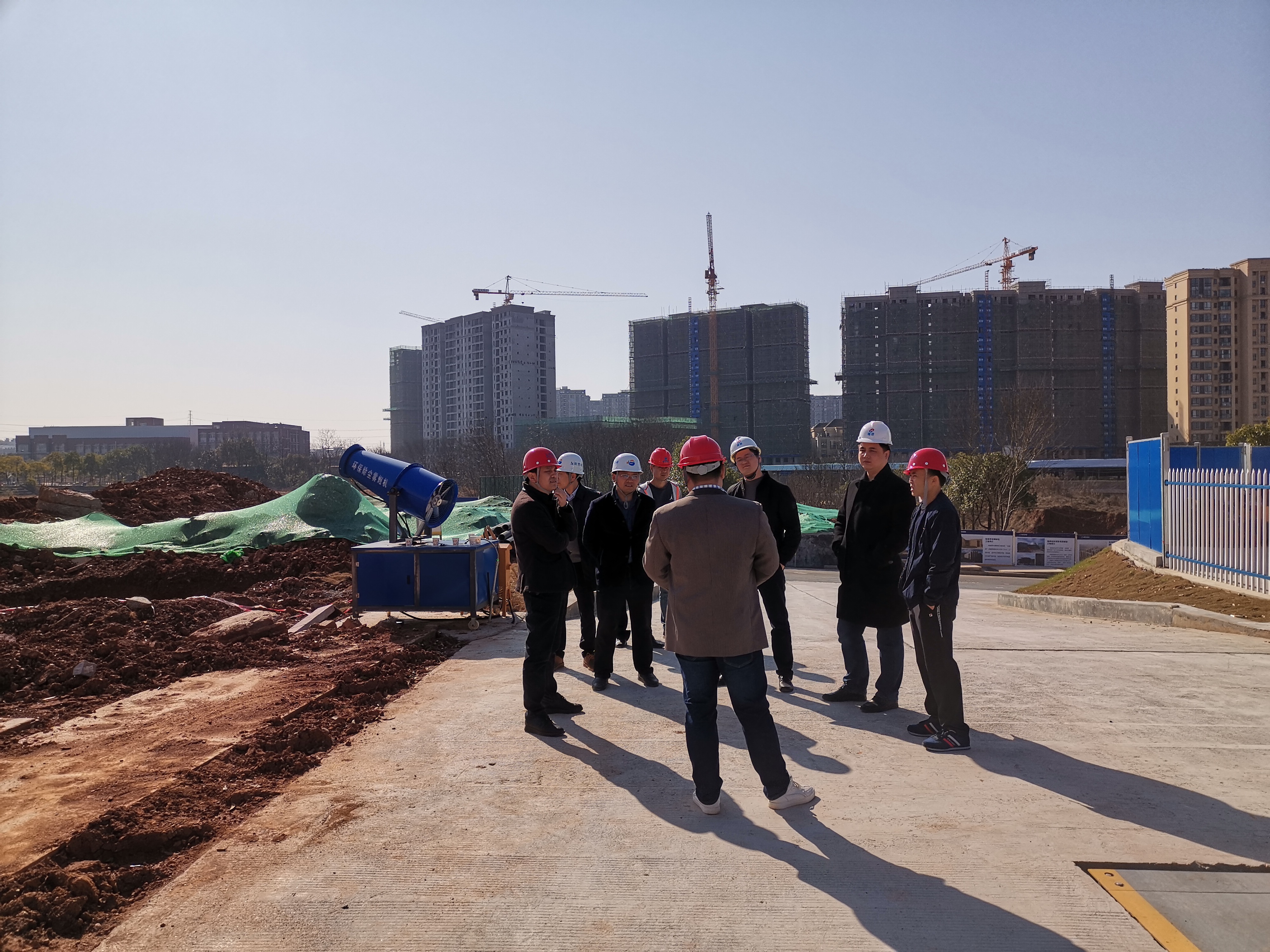 新春开工第一天,基建处处长侯伟建,副处长周娇林、王英强,工程科科长陈三友一行到项目施工现场查看,详细询问了桩基检测以及工人复工情况,认真核查了年前检查查出的部分安全隐患的整改情况,进一步强调安全施工的重要意义。