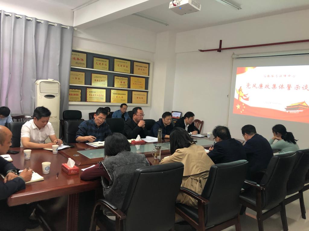 10月19日下午,为深入学习贯彻党的二十大精神,后勤中心纪委在能源大楼1栋1032会议室组织集体廉政谈话和警示教育专题会议。会议由中心纪委书记刘治国主持,中心党委书记王明彦、主任孔蔚湘、学校纪委派驻后勤中心纪检员彭玉楼、中心党政班子和纪委班子全体成员、各二级部门主要负责人参加会议。