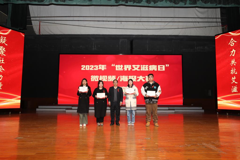 活动现场还为防艾微视频与海报大赛的奖获者颁奖。本次大赛共收集视频作品32件,海报作品161件,同学们将知识融入作品,精彩纷呈。优秀作品参与了2023年湖南高校防艾科普作品大赛角逐,文新学院赵嘉敏团队的视频作品和设艺学院唐斯淇团队的海报作品分别荣获一等奖。