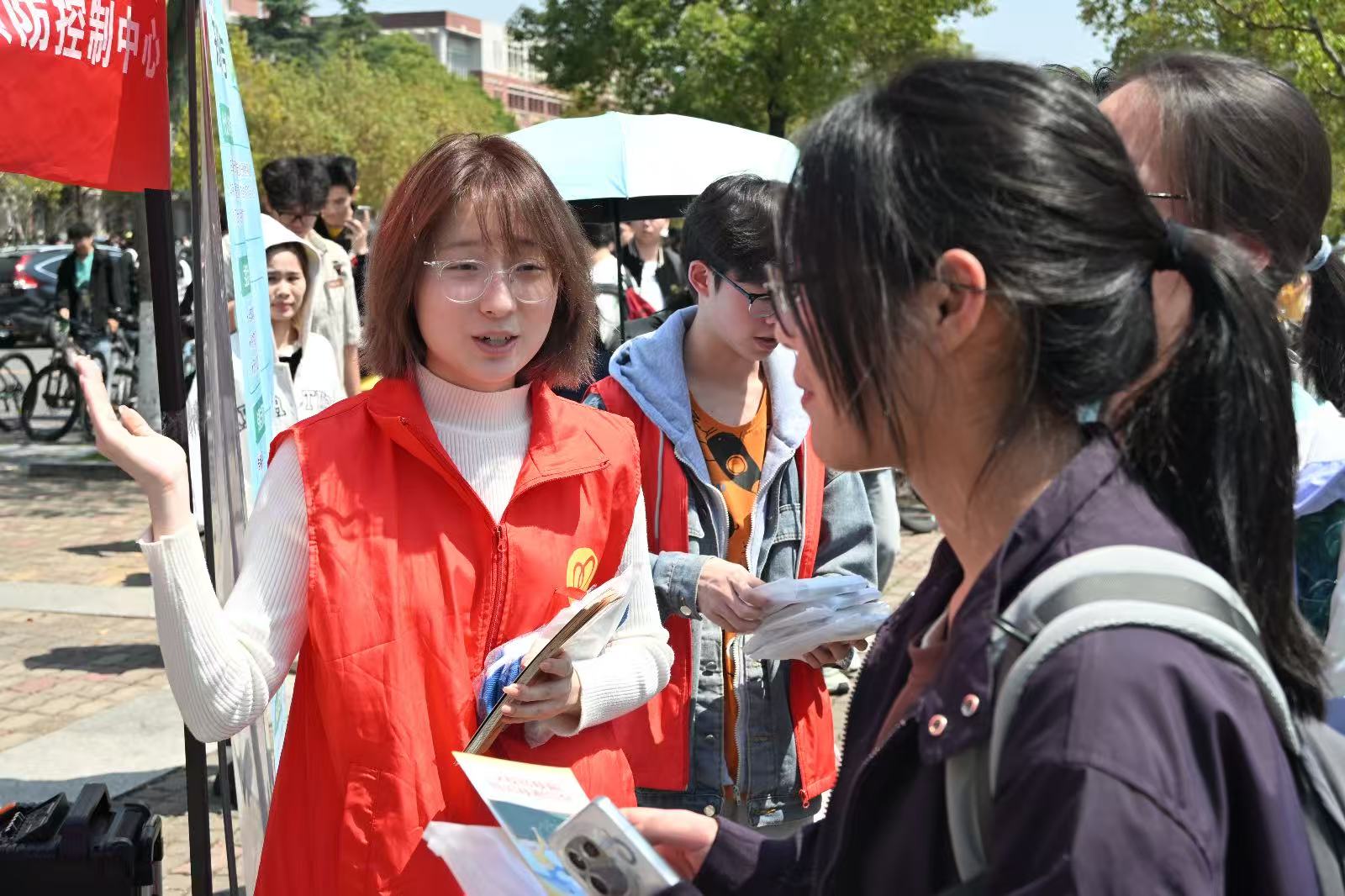 3月24日,汀香园食堂前坪设立了宣传咨询点。现场滚动播放结核病防治知识,宣传展板详细介绍了结核病的发病原因、传播途径、症状表现以及预防治疗方法等。工作人员和志愿者们向过往师生发放结核病防治宣传手册和纪念品,并耐心解答大家提出的关于结核病防治的疑问。同学们纷纷驻足展板前仔细阅读,或拿着宣传资料认真询问,现场气氛热烈。