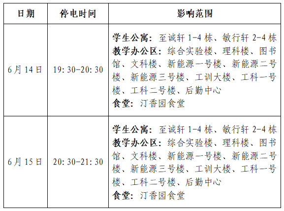 云塘校区停电通知