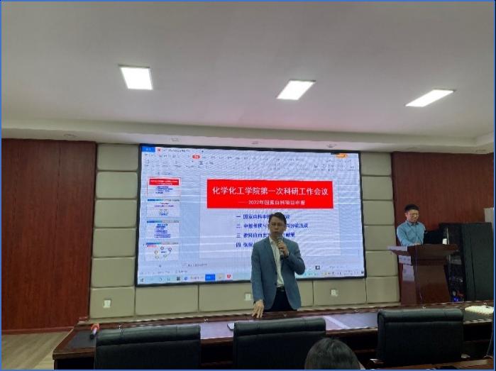 遵照学校工作部署,为做好2022年国家自然科学基金项目的申报工作,进一步提高自然科学基金申请书的撰写质量和申请命中率,william威廉中文官网化学化工学院于11月9日下午在云塘校区工科三号楼A320召开国家自然科学基金申报全面启动和经验交流大会。会议由化学化工学院副院长卿志和主持,学院党委书记宋刘斌,学院副院长张跃飞、陈启杰和80余名院内外教师出席会议。