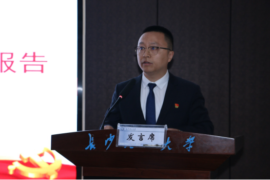 宋刘斌代表学院党委作《凝心聚力,理工融合,以五个突破开创化学学院特色发展新局面》的工作报告。报告总结了过去的工作,学院党建工作成绩斐然,学科专业建设稳步推进,人才培养质量逐步提升,科研能力与水平显著提高,队伍建设不断加强,学生工作成绩显著。报告客观分析了我院在学科建设、领军人才、科研项目、科技成果和社会服务、党的建设等方面存在的差距和不足。报告规划了学院的工作重点和工作目标,强调“十四五”期间,学院将以学校第四次党代会精神为指导,紧紧围绕学校发展战略,团结师生员工,聚焦“一个中心、两个重点、三个基础、四项建设、五个突破”的发展目标,即:紧盯人才培养这一中心,抓住教学质量工程、学科学位点建设两个重点,夯实学院思想组织、规章制度、教风学风三个基础,加强教学研究、师资队伍、专业学科、科研平台四项建设;实现化学一级学科博士点、国家级人才、B类学科、国家级科研奖励、国家一流课程五个突破。重点做好四个方面的工作:一是坚持党建引领,以制度建设助推学院获得新发展;二是坚持育人为本,以人才培养质量助力专业学位点实现新突破;三是坚持人才聚集,以高水平人才力推教学科研迈上新台阶;四是坚持交叉创新,以理工融合推动学科平台发展。