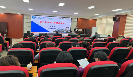党委书记宋刘斌作了《以党建为引领,一手抓文化建设,一手抓班子建设,凝心聚力推进学院各项事业快速发展》的讲话。他提出,2022年是学院的“作风建设年”,院党委将以此为抓手,立足新形势新要求,以“抓稳定、聚人心”为工作目标,结合学院发展的实际,坚持深化改革,全面修订、完善学院规章制度,带头立规矩、定制度,大力推进学院建设的规范化、制度化。一方面以文化建设为牵引,助推学院内涵式发展。另一方面加强班子统筹引领,推进学院全面发展,并对新时期如何加强学院班子建设提出了5点要求。