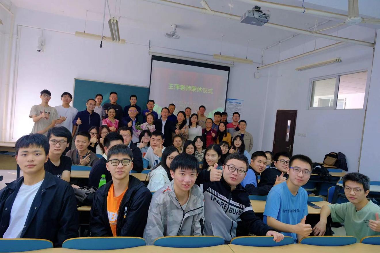 最后,张跃飞代表学院为王萍老师赠送荣休纪念品,全体师生合影留念。