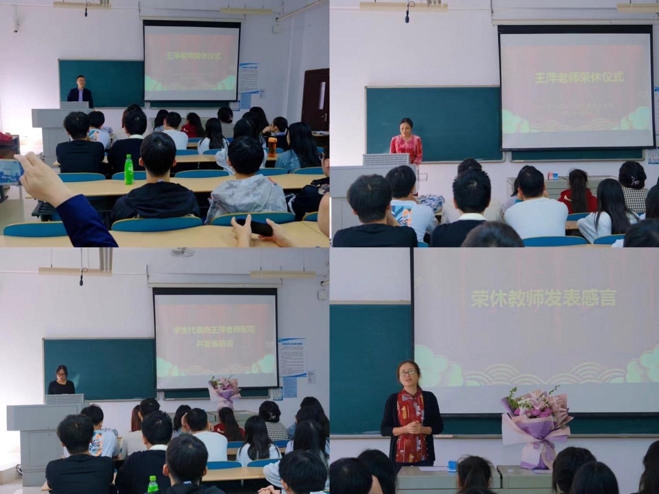 王萍老师在感言中回顾了自己从8岁、18岁、到58岁的心路历程,感谢学院领导的关怀,同事的帮助和同学们的认可,感叹自己从业30余年,为国家、学校、学院和专业作出了自己的一份贡献。回首半生,努力过,奋斗过,此生无悔。
