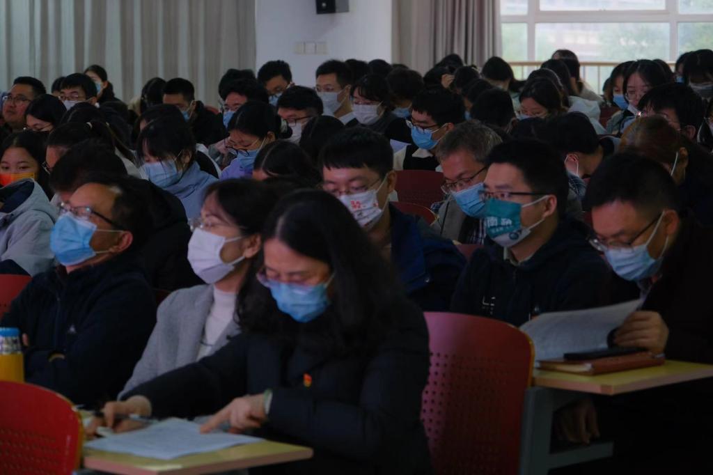 宋刘斌作总结讲话,曾校长的报告史实丰富、数据详实,具有很强的思想性、针对性、指导性,帮助全院师生更深入理解和把握了大会精神。他要求,学院上下要进一步提高政治站位,深入学习,衷心拥护“两个确立”、忠诚践行“两个维护”,更好用大会精神统一思想、凝聚共识、坚定信心、增强斗志。要把握好学习重点,把握好工作要求,推动实际工作,以党的二十大精神为指引,牢记“三个务必”,牢记“五个必由之路”,牢记空谈误国、实干兴邦,把学习贯彻党的二十大精神与贯彻省第十二次党代会精神结合,与党史学习教育结合,与加强学校“双一流”建设、决胜建成“百强”大学的具体工作结合,把大会精神转化为干事创业的动力,在新征程上创造新业绩,在全面落实“三高四新”战略定位和使命任务中贡献化学力量!