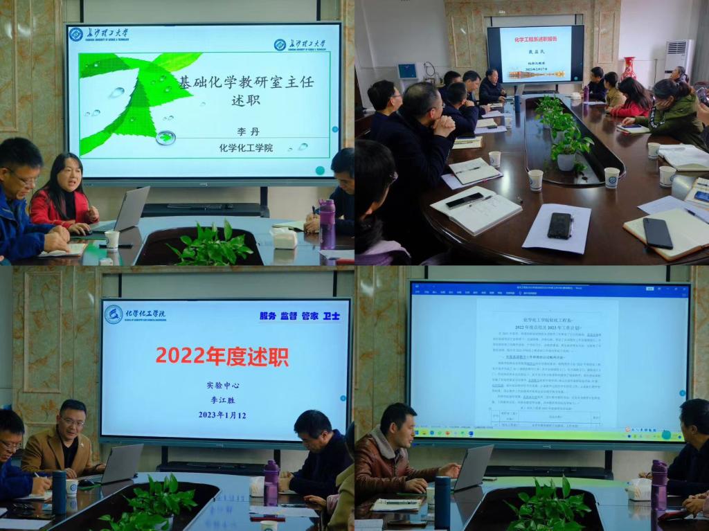 为全面回顾和总结2022年度学院各项工作,进一步提升中层干部的履职能力,加强学院干部管理科学化、规范化和制度化,2月17日下午,化学化工学院在工科三号楼B318会议室召开中层干部述职大会。会议线下听取9位中层干部的述职。学院全体党政领导班子和全体中层干部参加会议,会议由副院长(主持工作)张跃飞主持。