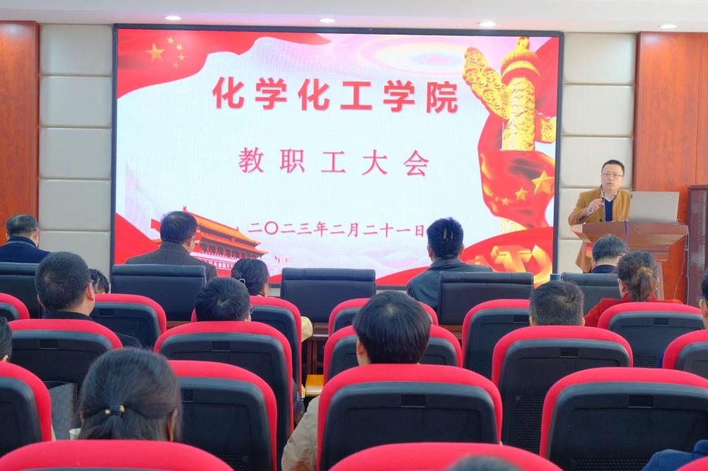 新生万象,煦日渐近。为进一步统一思想认识,明确工作目标,凝聚发展合力,更高效地谋划推进全年工作,3月21日下午,化学化工学院在工三A320会议室召开新学期第一次全院教职工大会。学院党政领导班子和全体教职工参加会议,会议由副院长(主持工作)张跃飞主持。