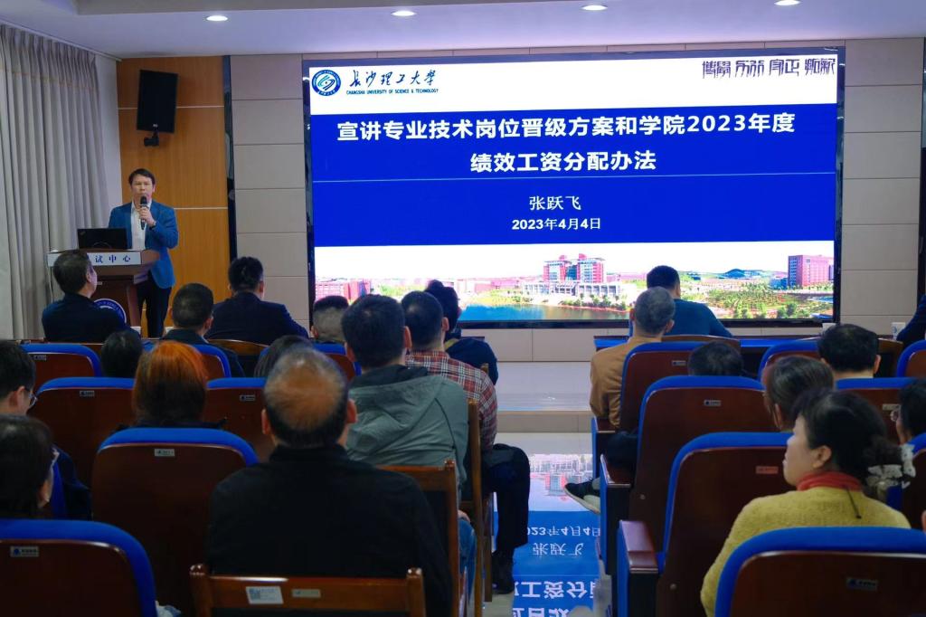 张跃飞解读了学院2023年度绩效工资分配方法,他指出,绩效工资改革是推动我院实施综合改革的重要抓手,希望通过本次政策解读宣讲,让全院教职工了解绩效改革的目的、内涵和意义,《分配方法(征求意见稿)》要通过反复讨论,修订完善,达成共识。希望借助宣讲会,充分发扬民主,广泛征求意见,调动各系(中心、室)自主性和自觉性,调动广大教职工的积极性,进一步为学院高质量发展注入新动力。