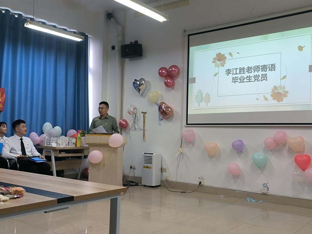 在轻松愉快的交流氛围中,毕业生代表畅所欲言。他们回顾了在校期间的学习心得和成长经历,分享了各自的收获和感悟,言语中饱含深深的眷恋、热爱、感激和不舍之情,真切表达了对母校的深情厚谊、对老师的敬重和感谢。随后支部的师弟师妹们用歌舞乐器表演等不同的方式也为即将毕业的师兄师姐们送上了祝福与期盼。大家还未毕业生党员送上了小礼物。最后,任艮丰总结了本次欢送会,并给与了充分的肯定。她强调学院领导班子非常重视教育工作,也希望在座的同志能够加强理论学习,增强政治意识,提高政治敏锐度。