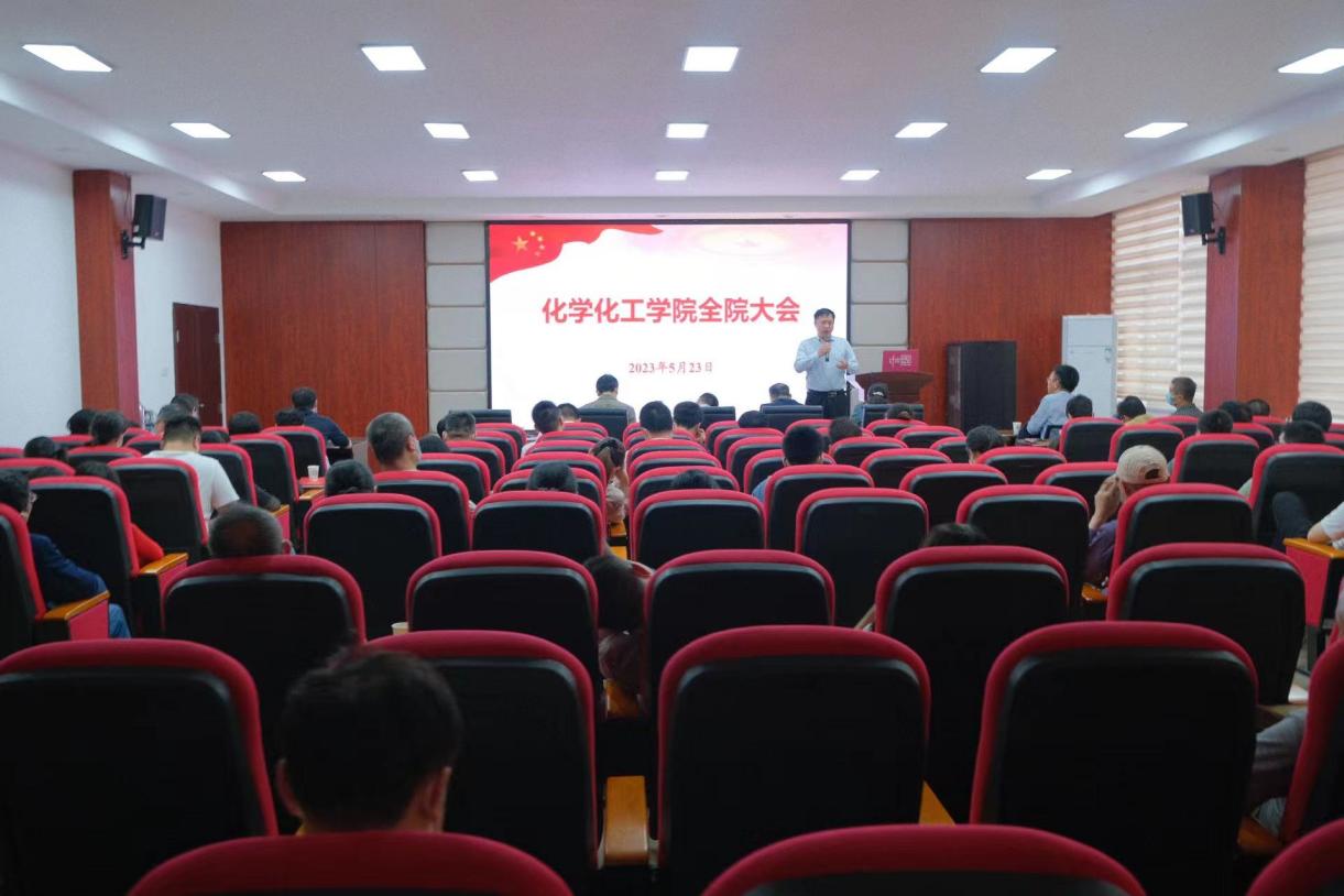 5月23日下午,化学化工学院在工科三号楼A320会议室召开全院教职工大会,学院党政领导班子和全体教职工参加会议,会议由党委副书记、副院长任艮丰主持。