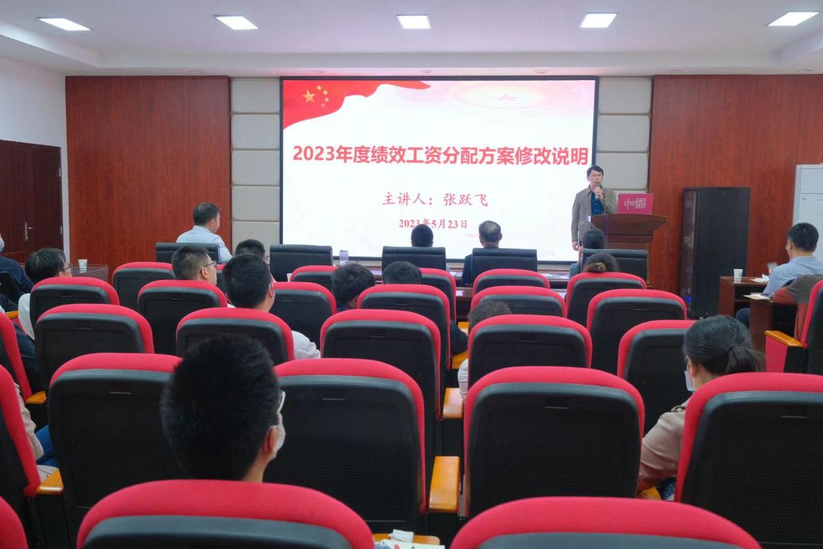 副院长(主持工作)张跃飞对2023年度绩效工资分配方案的修改进行了说明。他分析了学院绩效管理的现状以及学院绩效工资分配改革的重要性,并对修改后的绩效工资分配方案逐条进行了详细的解读。他指出,绩效工资分配改革是推动我院实施综合改革的重要抓手,希望通过本次方案解读,让全院教职工了解绩效改革的目的、内涵和意义。希望广大教职工认真领会绩效工资分配改革的必要性,根据学院发展定位,更新观念,统一思想,进一步为学院高质量发展注入新的活力。