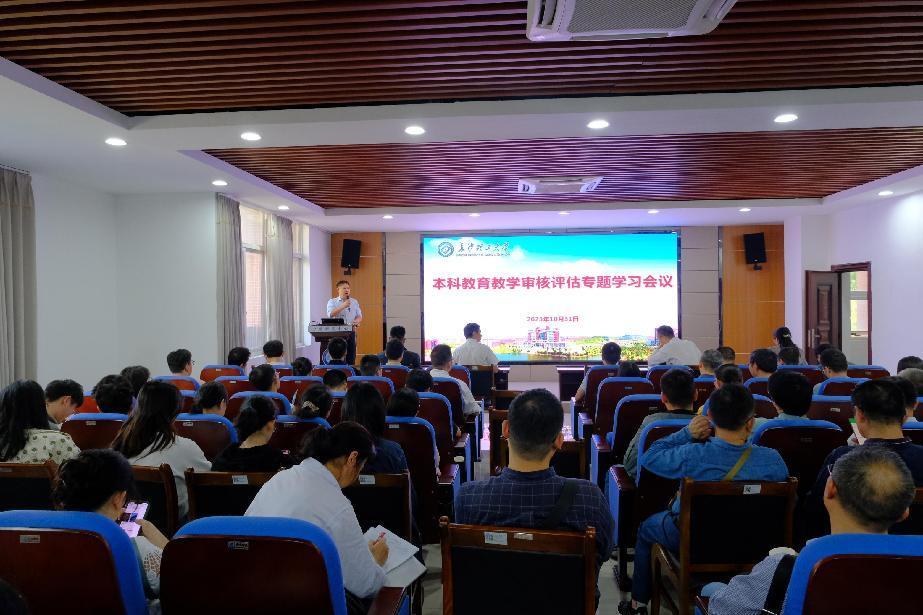 为贯彻落实学校本科教育教学审核评估总体工作部署,强化教师对新一轮审核评估指标体系和内涵的深入理解,促进审核评估自评自建工作。2023年10月31日,化学化工学院在新能源大楼301会议室召开全院大会,专题学习学校本科教育教学审核评估《自评报告》,学院党政领导班子和全体教职工参加会议。会议由党委副书记、副院长任艮丰主持。