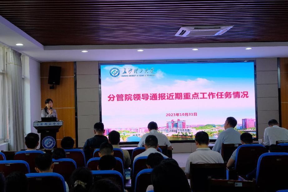 学院分管领导分别通报了本学期以来各项工作的执行和落实情况,围绕本科教学审核评估、研究生培养与管理、实验室建设与安全管理、国自科的申报、大型仪器设备开放共享等方面,对下一步工作进行安排部署。