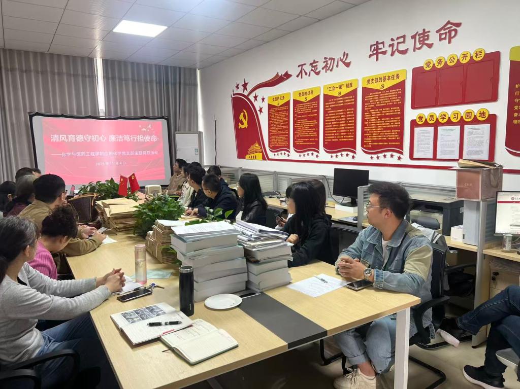 为深入贯彻落实中央八项规定精神,扎实推进廉洁文化建设,11月4日下午,化学学院党委组织各党支部集中开展“清风育德守初心 廉洁笃行担使命”主题党日活动。学院全体教师参加活动,以实际行动践行廉洁从教、廉洁从政、廉洁治学的价值追求。