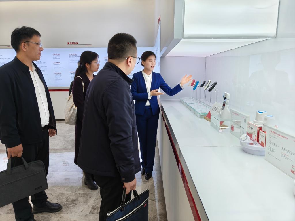 在三诺生物工作人员的引导下,学院宋刘斌一行首先参观了企业研发中心、产品展示区等功能区域,详细了解公司在生物传感、医疗检测等领域的技术布局与产品研发进展。其后,师生代表亲身体验了三诺相关产品,对企业在血糖监测、生物检测等方向的技术成果有了更直观的认识。