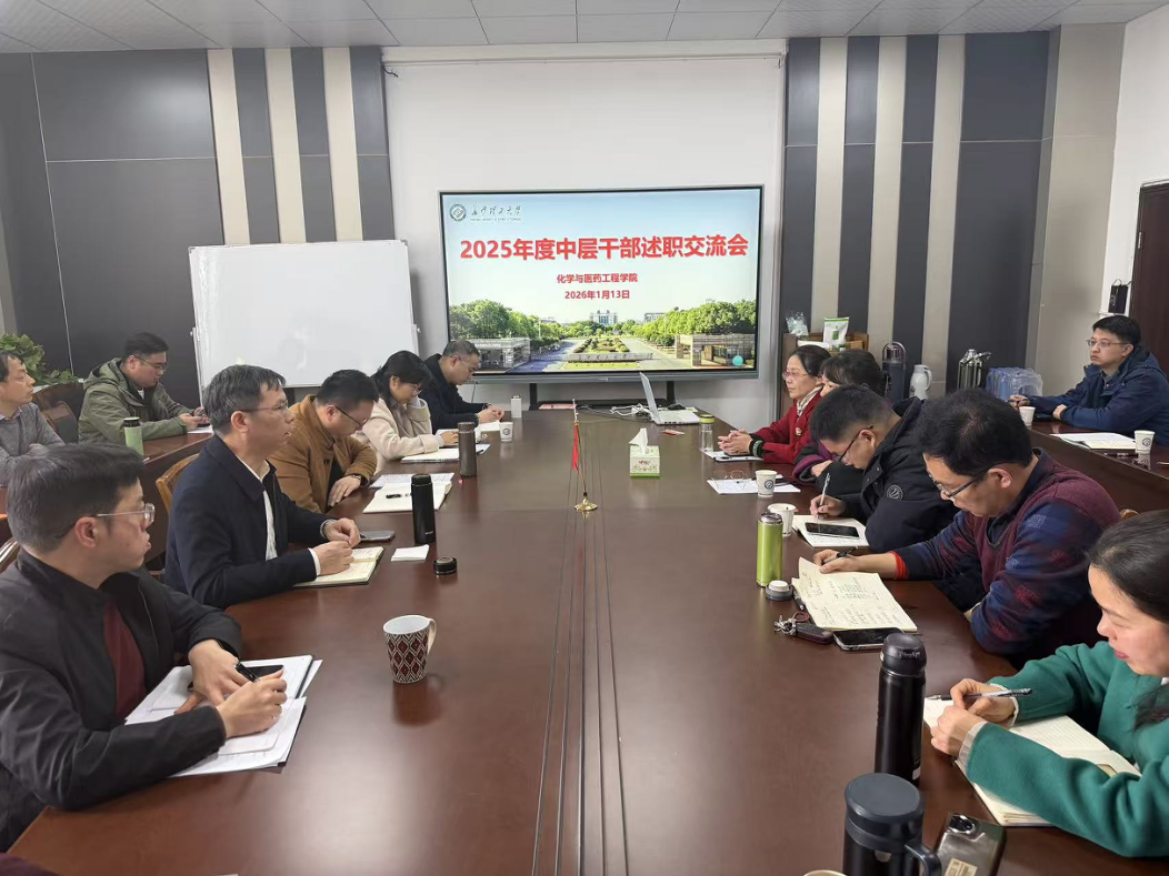 1月13日上午,化学与医药工程学院在云塘校区工科三号楼B446会议室召开2025年度中层干部述职交流会,系统总结过去一年的工作,科学谋划新一年的发展。学院领导班子成员及全体中层干部参加会议。会议由院长张跃飞主持。
