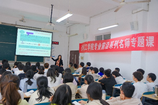 2023年4月3日上午,湖南大学教授、教育部高等学校化学类专业教学指导委员会委员,国家“万人计划”教学名师王玉枝教授在云塘校区工三A210为22级本科生讲授题为“氧化还原滴定及其分析前沿”的化学化工专业前沿系列名师专题课。化学化工学院党委书记宋刘斌、副院长(主持工作)张跃飞、副院长陈启杰、应用化学国家一流专业负责人曹忠教授以及分析化学课程组的部分教师和学生共计100余人参加了本次专题课。专题课由学院副院长(主持工作)张跃飞主持。