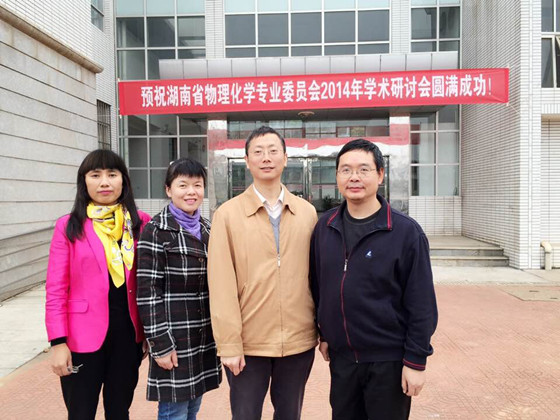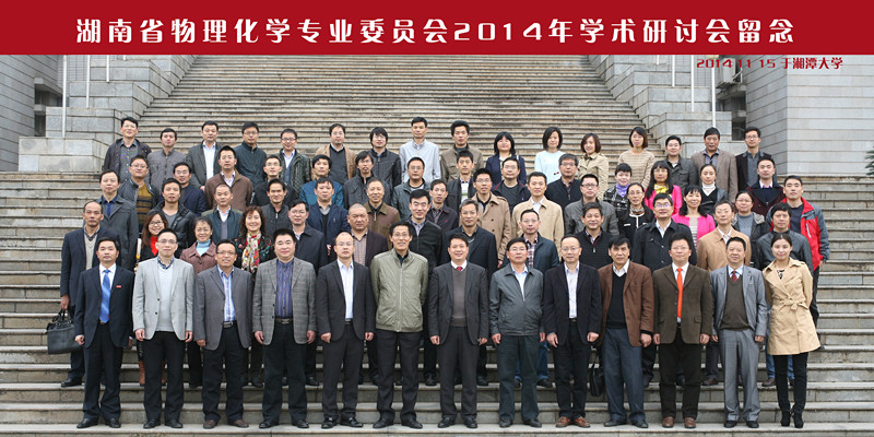 湖南省化学化工学会物理化学专业会员会2014年学术研讨会于2014年11月14-16日在湘潭大学举行,会议由湘潭大学化学学院承办,中南大学、湖南大学及william等省内高校物理化学专业60余名专家教授参加研讨会。我院曹忠教授,吴道新教授、肖忠良教授、王少芬副教授和童海霞博士参加了此次大会。