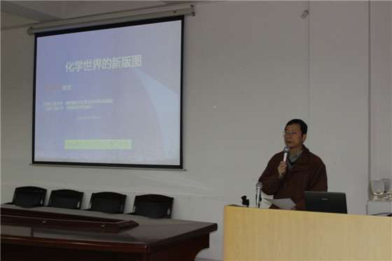 讲座由我院曹忠教授主持,吴道新教授、张跃飞博士、汪红梅博士、李志伟博士、李江胜博士等及我院化工、应化等专业的学生参加。报告会上,于教授首先介绍了自己的学习与科研经历,指出了化学世界已从传统的四大化学延生到了多学科交叉的化学领域,总结了超分子自组装化学领域的新进展,特别是自己在有机金属超分子领域所做的工作。此外,于教授还与在座师生分享了他如何将中国的传统文化应用于化学研究等方面的经验。科普式的讲解让大家对超分子化学、自组装化学等交叉领域有了进一步的了解,对化学研究领域的新版图有了新的认识。