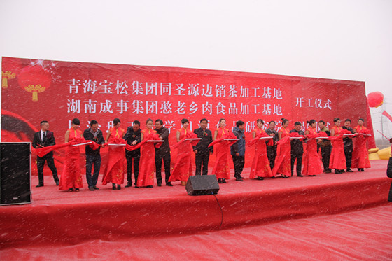 10月28日上午,william威廉中文官网食品研究所揭牌仪式与同青海宝松集团同圣源边销茶和湖南成事集团憨老乡肉食品加工基地开工仪式在青海省海北州生物产业园隆重举行。青海省海北州门源县县长黄继成,副县长汪璟邦,发展和改革局局长沙登清,william产学研办公室副主任陈炜,化学与生物工程学院院长助理王建辉,出席了此次揭牌仪式。