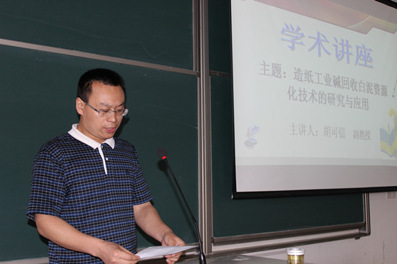 2014年5月23日上午9:00-10:30在云塘校区工三A209室,胡可信副教授应邀为化学与生物工程学院本科生和研究生作了题为“造纸工业碱回收白泥资源化技术的研究与应用”的学术报告。