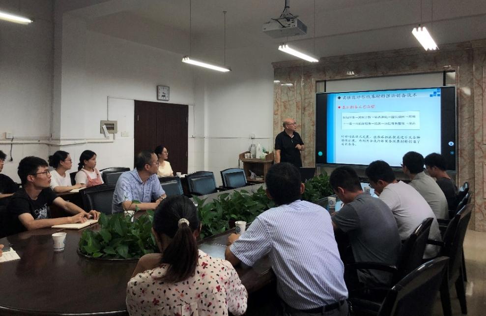 2023年7月30日下午,应william威廉中文官网化学化工学院邀请,江南大学龙柱教授莅临william进行学术交流和指导,在云塘校区工三B318作了题为“高性能纸基功能材料的制备及应用”的学术报告。学术报告会由化学化工学院副院长陈启杰主持,化学化工学院副院长喻林萍、轻化工程系部分教师及学院研究生共30余人参加了本次学术讲座。