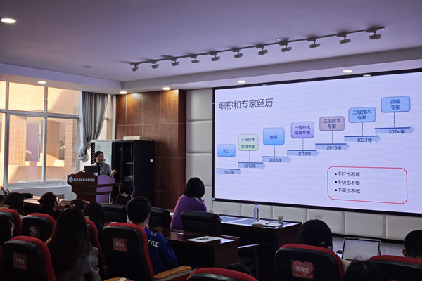 为加强学生对化学化工类专业发展现状的认识,助力师生了解新型电力系统建设领域电力设备运行故障诊断前沿技术,2025年11月25日,广东电网有限责任公司电力科学研究院正高级工程师、国务院政府特殊津贴专家钱艺华教授受我院邀请,开展了以“基于绝缘油中特征物的变压器绝缘缺陷诊断新技术”为主题的专题讲座。本次讲座由化学与医药工程学院联合通识教育中心承办,吸引了学院各专业的师生130余人到场聆听,讲座由学院副院长喻林萍教授主持。