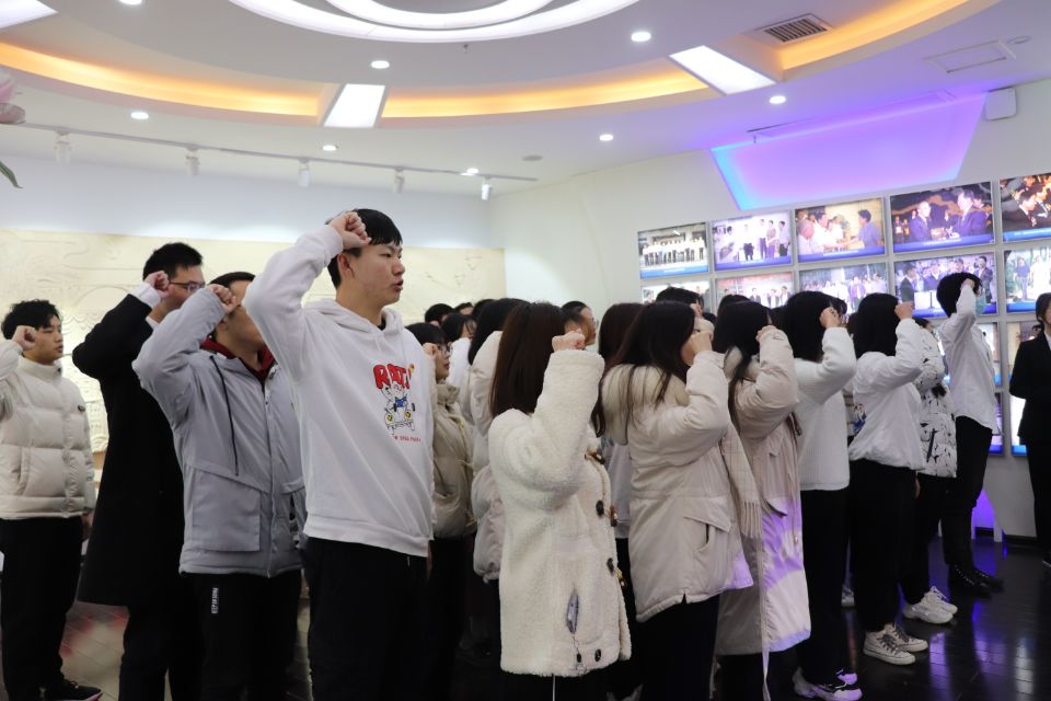 在食品支部李亚鹏同志的领誓下,学院全体新发展党员右手握拳,面向党旗,齐声念出入党誓词,气氛热烈,振奋人心。短短80个字,是怀揣初心站在新起点的他们对党的庄严承诺,是担起使命迎接新挑战的他们为人民服务的强大决心。随后,刘文成同志向新入党的同志表示了衷心的祝贺,并表示希望新发展党员们能进一步端正入党动机,牢记党的宗旨,勇于担当、乐于奉献。站在历史的交汇点上,我们作为学生党员,理应担起时代赋予我们的使命,为祖国宏伟蓝图贡献自己的青春力量。随后,全体新发展党员跟随着讲解员的步伐参观了校史馆,重温了william的光辉发展历史,对“博学力行守正拓新”的校训有了更深的理解,坚定了为学校的未来创造更加辉煌的明天的决心。
