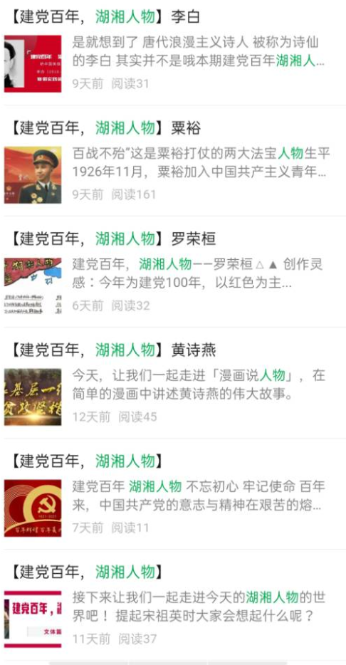 公众号“建党百年,湖湘人物”系列部分作品。