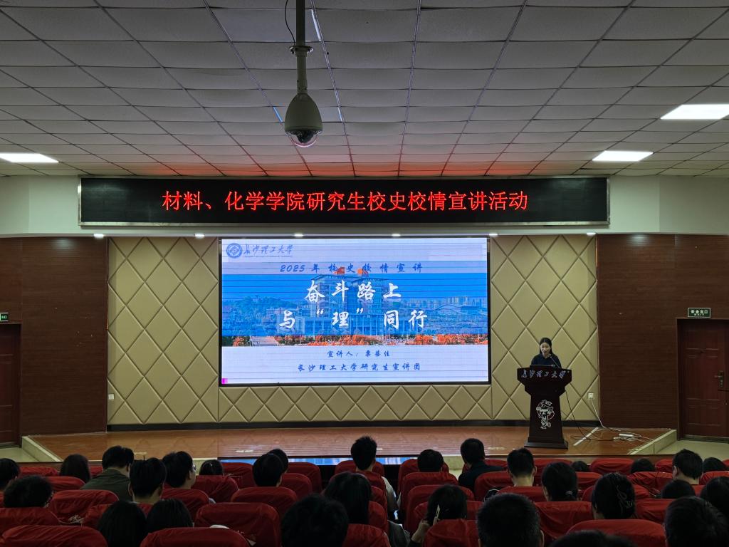 宣讲以校徽解析开篇,粟蓓佳介绍其融合 “长沙”“理工” 首字母的设计巧思,及蓝橙红色彩所承载的行业特色与校训精神。随后,她通过老照片梳理校史:1956 年两校创办、2003 年合并升格、2012 年入选 “中西部高校基础能力建设工程”、2022 年成为湖南 “国内一流大学建设高校”,并提及学校近七十年培养 20 余万名应用型人才的育人成果。