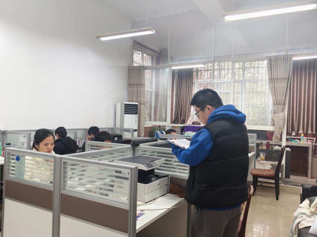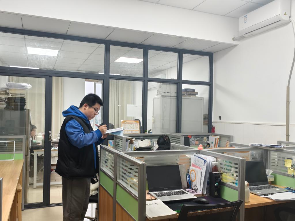 本次排查工作坚持“安全第一、预防为主、综合治理”的方针,由学院统一部署,重点围绕消防安全、卫生环境、管理制度三大方面共14个要点,进行了全覆盖的实地检查。陈鑫宇深入每一间工作室,仔细查验安全通道是否畅通、用电是否规范、有无违规电器使用及易燃易爆品存放等情况;认真查看室内环境卫生、物品摆放、通风采光等状况;同时核查安全管理责任体系是否健全、制度是否上墙、日常巡查记录是否完备、研究生对管理规定的知晓与遵守情况等。